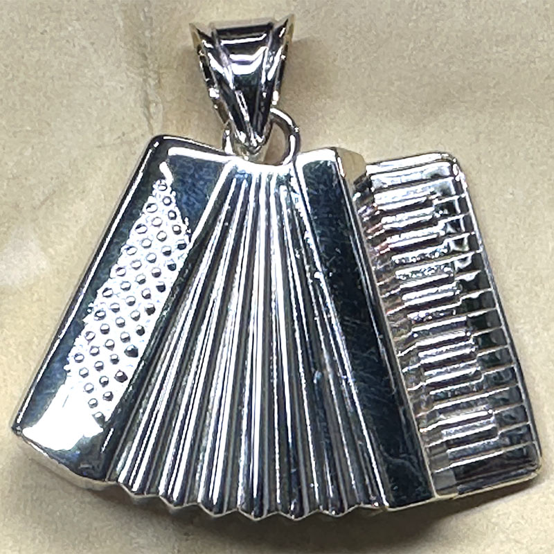 There is a certain magic in music, and this custom 14K white gold accordion pendant transforms that magic into a timeless keepsake. Expertly handcrafted by Ayala’s Jewelry in Huntington Park, this pendant is a celebration of craftsmanship and creativity. Every detail, from the textured bellows to the polished keys, is brought to life with meticulous precision.