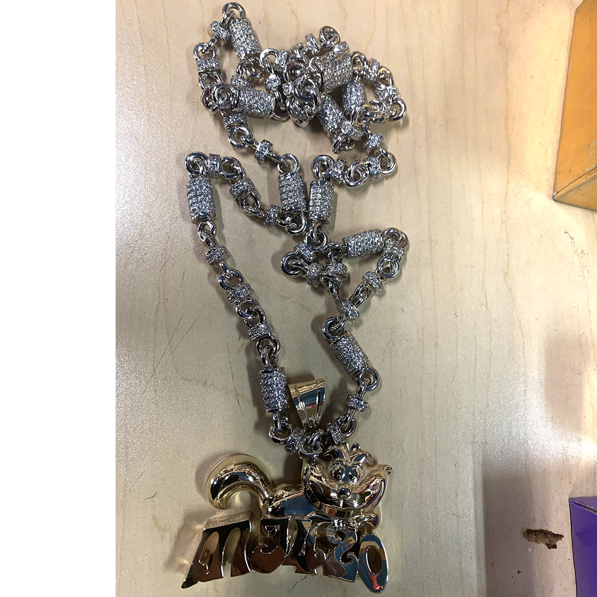 This stunning piece is a true showstopper, designed for those who appreciate the perfect blend of luxury and personality. The bullet chain is meticulously handcrafted in 14K white gold and adorned with VS-quality diamonds, ensuring it sparkles brilliantly from every angle. Each link is solid and weighty, giving the chain a bold, confident presence. The custom pendant adds a personal touch, allowing you to showcase a name or word that holds special meaning, all while maintaining a high-end look. This combination of a fully iced-out chain and bespoke pendant makes it the perfect piece for celebrations, milestones, or simply elevating your style. Ideal for anyone looking for custom jewelry in Huntington Park or a bespoke gold pendant in Los Angeles, this piece represents Ayala’s Jewelry’s dedication to craftsmanship and individuality. A true investment piece that you can treasure for a lifetime.