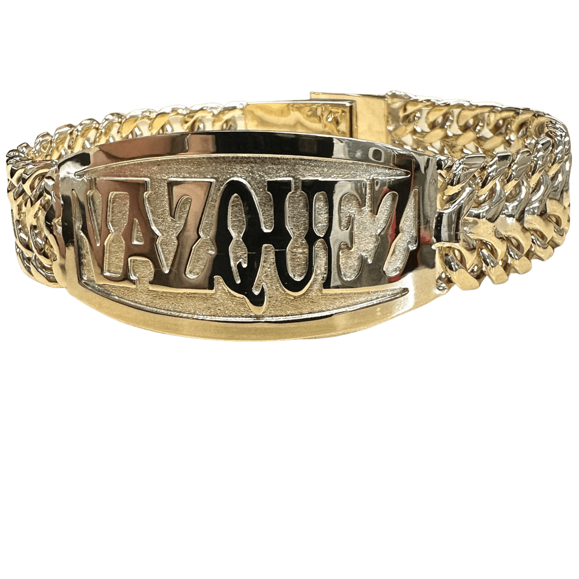 Crafted with precision and passion, this 14K gold nameplate bracelet is a shining example of Custom Jewelry Huntington Park. The interwoven chain design and polished finish exude elegance, while the bold “VAZQUEZ” cutout adds a personal touch that defines Personalized Gold Jewelry Los Angeles. Whether you’re celebrating a milestone or gifting a loved one, this piece reflects the artistry behind Ayala’s Jewelry Custom Chains Huntington Park. It’s more than just a bracelet, it’s a statement of identity and craftsmanship. Ideal for those seeking Local Custom Gold Bracelets Huntington Park or custom work pendants LA, this bracelet pairs beautifully with Bespoke Gold Pendants Los Angeles and even complements Huntington Park Custom Engagement Rings. Every detail is handmade, making it a true gem in the world of handmade gold jewelry Huntington Park. Elevate your style with a piece that’s as unique as you are.